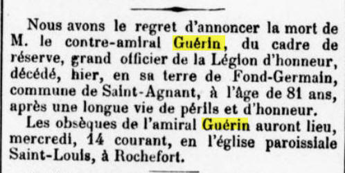 Décédé 12 novembre 1877 à SAINT AGNANT (Charente Maritime)
