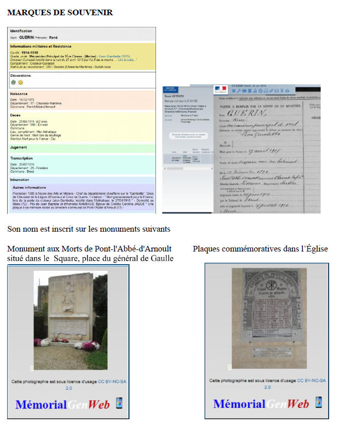 Décédé le 27 avril 1915, en mer au large de SAINTE-MARIE DE LEUCA,