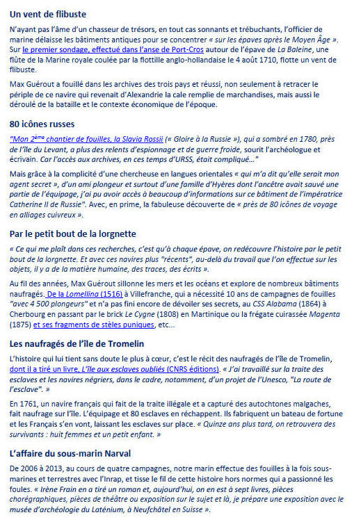 Il participe ainsi à la découverte et à la fouille d'épaves dans