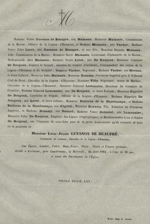 Guesnon de Beaupré, secrétaire en chef de la Marine à Brest et de