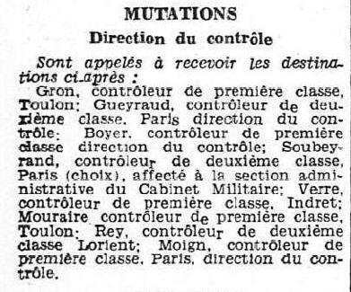 (affectation du 22 avril 1925), Chef de la 4ème Section (Contrôle de