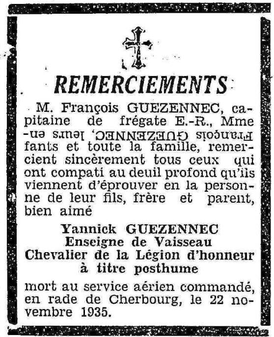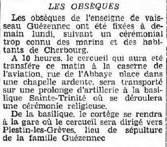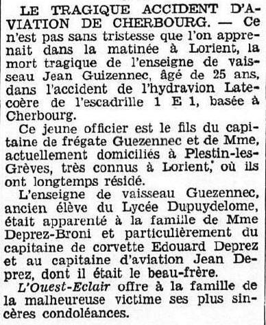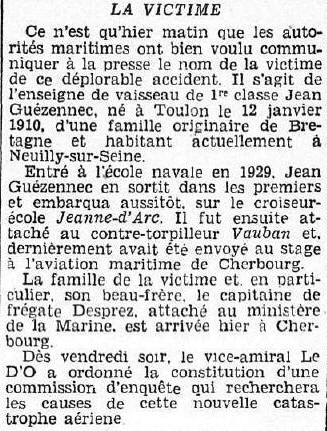Jean, Joseph, Marie GUÉZENNEC, pilote et chef de bord, est tué