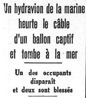 heurte le câble d’un ballon captif et tombe à la mer. L’EV1
