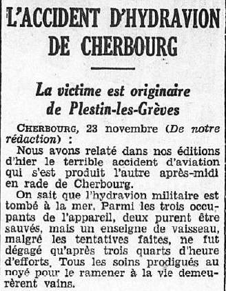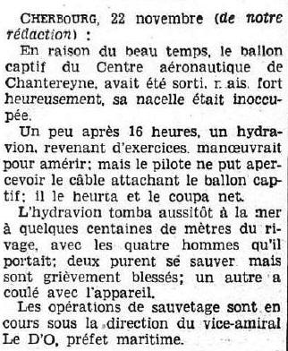 22 novembre 1935. Alors qu’il survole à basse altitude la rade