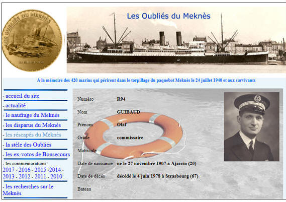 camps, puis avait embarqué sur le Meknès. Durant le naufrage, il