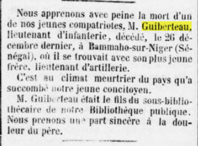 À son décès, en service au 1er Régiment de Tirailleurs Sénégalais.