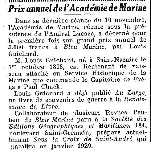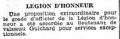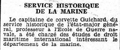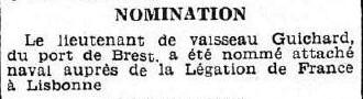 1934, Le lieutenant de vaisseau Guichard, du port de Brest, a été