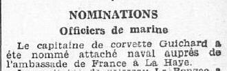 Guichard était attaché naval à l'ambassade de France à La Haye.