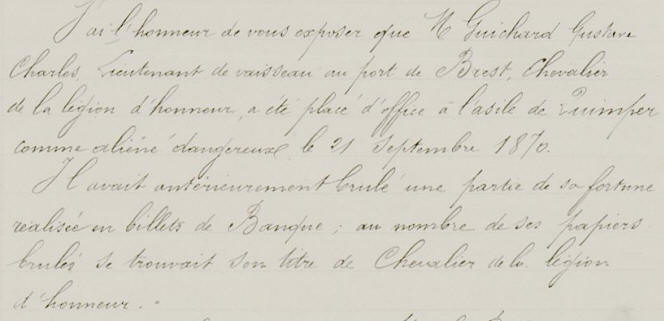 d'aliénés de QUIMPER, le 21 septembre 1870
