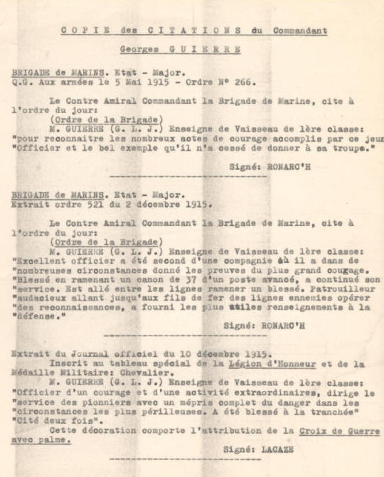 l'Armée navale en décembre 1915 : "Officier d'un courage et d'une