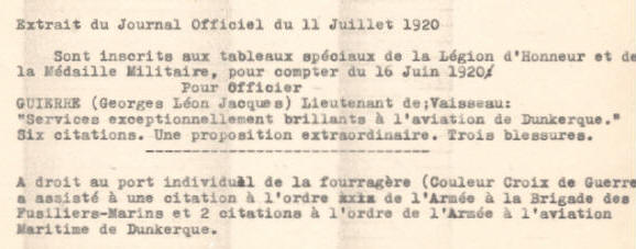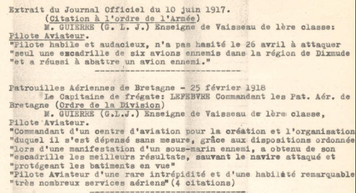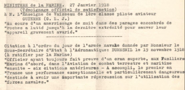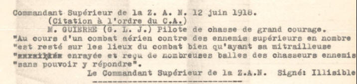 l'Armée navale en juin 1917 : "Pilote habile et audacieux, n'a pas