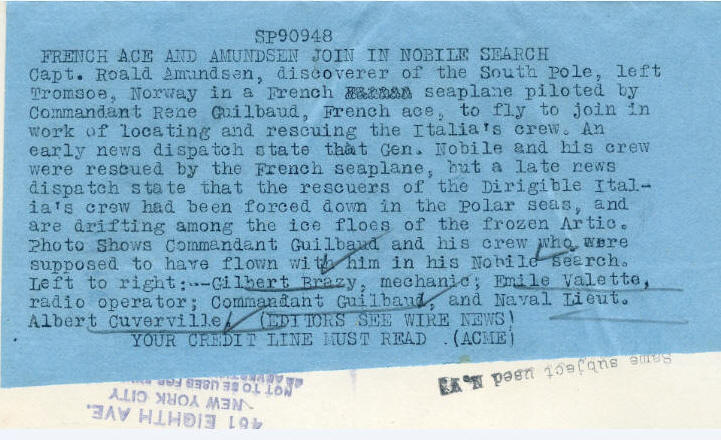 l'équipage de son dirigeable écrasé au Pôle Nord.