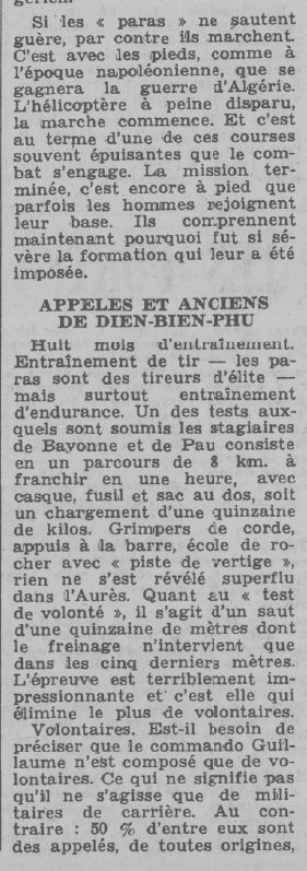 parachutiste et de commando, à Bayonne de mai à juin 1957, il