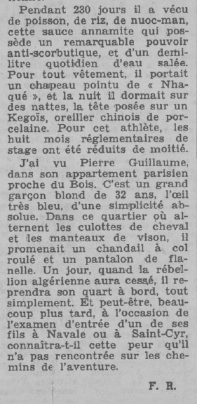 d’Indochine achevées, il souhaite rentrer en France à la voile mais