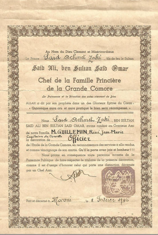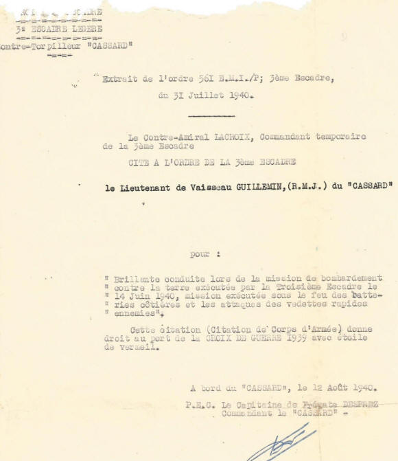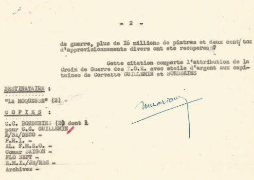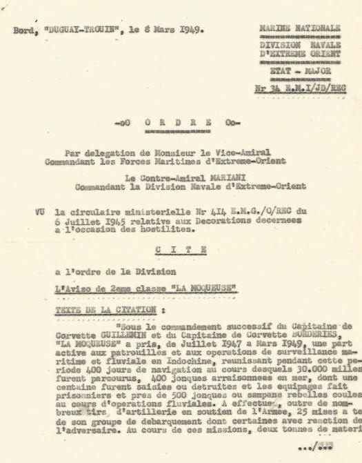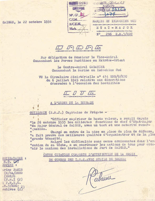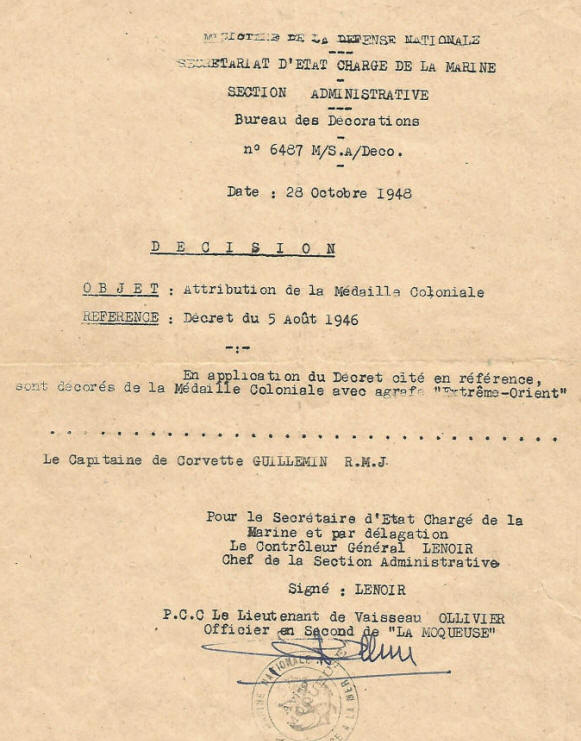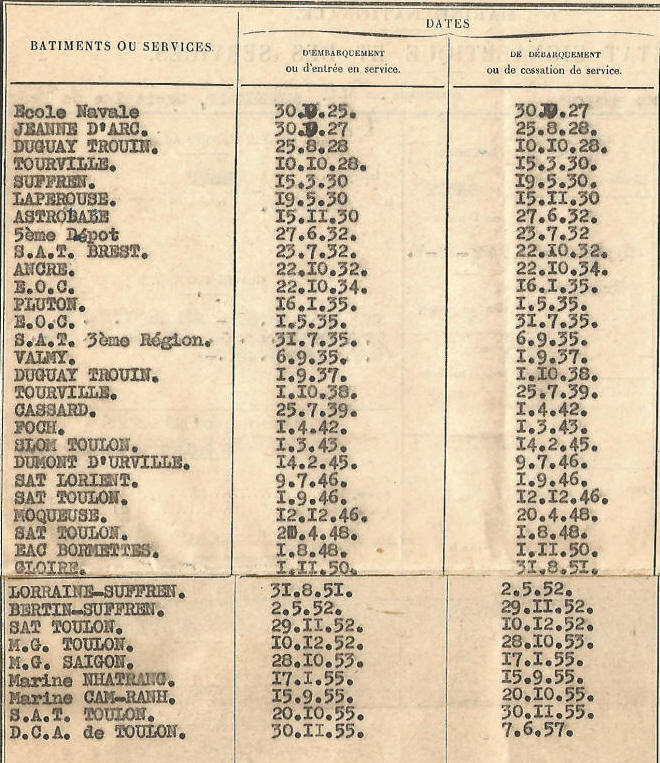 Marine à CAM-RANH, INDOCHINE; inscrit au tableau d'avancement.