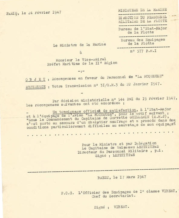 Capitaine de frégate le 2 juillet 1949.