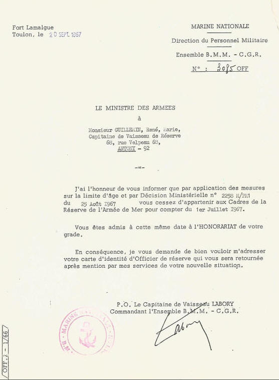 Capitaine de vaisseau le 1er septembre