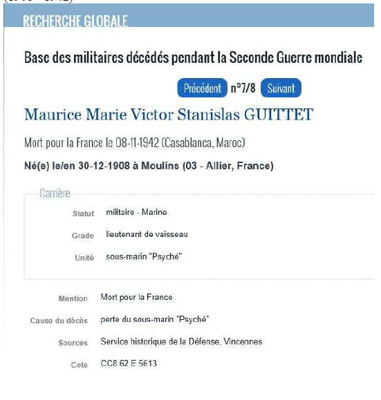 à MOULINS (Allier) - Disparu en mer le 8 novembre 1942 en rade de