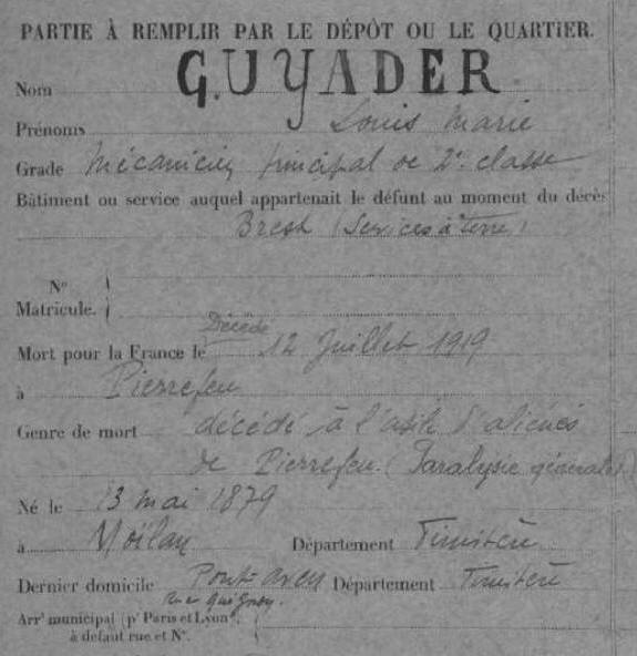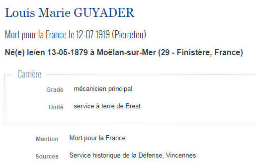Né le 13 mai 1879 à MOËLAN-sur-MER (Finistère) - Décédé le 12