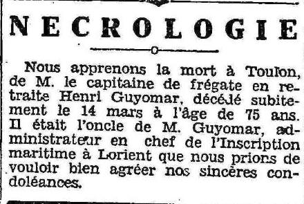 SAINT-SERVAN-sur-MER (Ille-et-Vilaine) - Décédé le 14 mars 1932 à