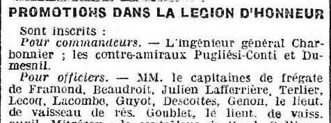 Capitaine de frégate le 11 avril 1916. Au 1er janvier 1918, port