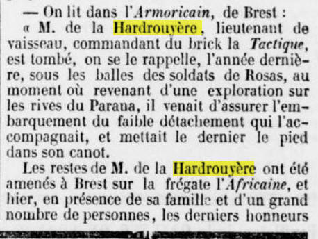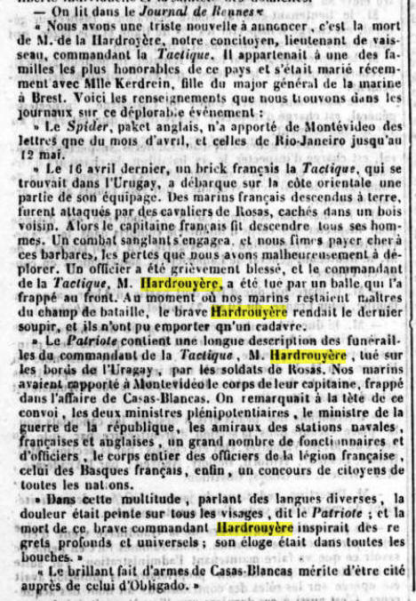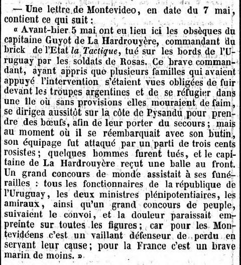 nouvelle de la mort de M. Guyot de la Hardrouyère, lieutenant de