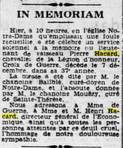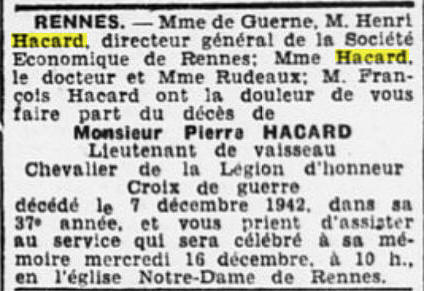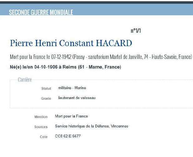 Décédé le 7 décembre 1942 à MARTEL-de-JANVILLE (Haute-Savoie).