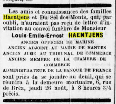 Haëntjens, négociant et de Adélaïde Victoire LEQUEN, son épouse