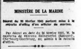 1ère classe le 15 mars 1920; port CHERBOURG.