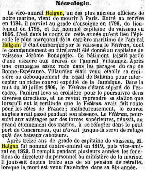 le Vétéran (de 74 canons), pour le commander en second sous les