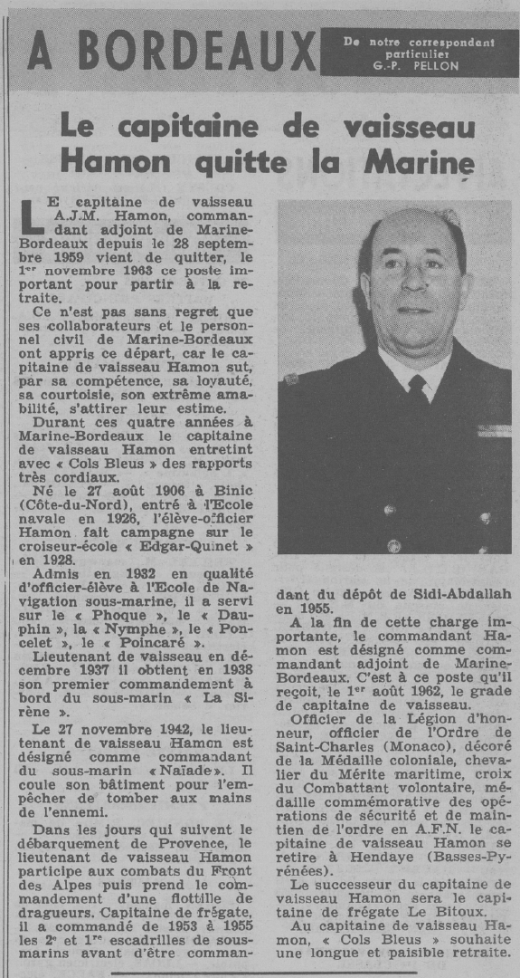 Commandant le Dépôt de SIDI-ABDALLAH; TUNISIE, chargé du C.M.M. et