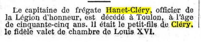 cousin) de : Alexandre Nicolas Hanet-Cléry. Capitaine de corvette.