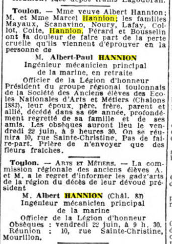 Mécanicien principal de 1ère classe le 14 septembre 1906.