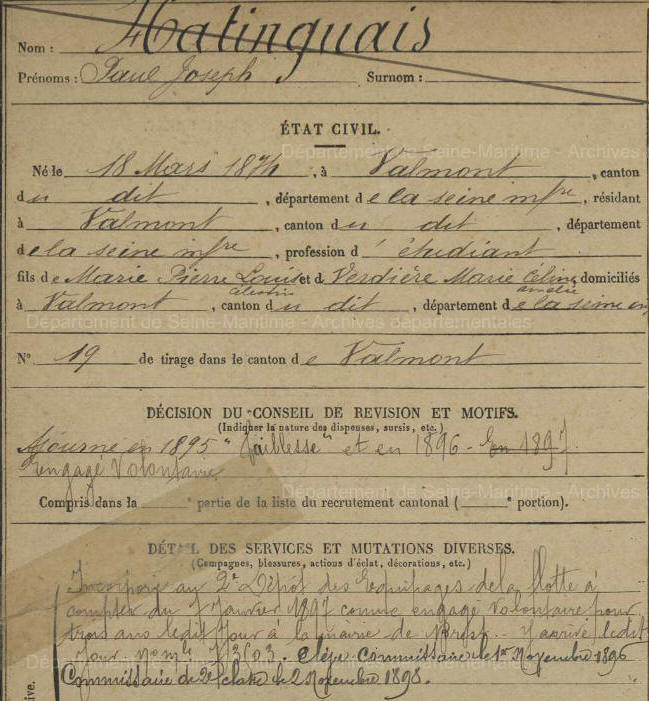 Né le 18 mars 1874 à VALMONT (Seine Maritime) - Décédé