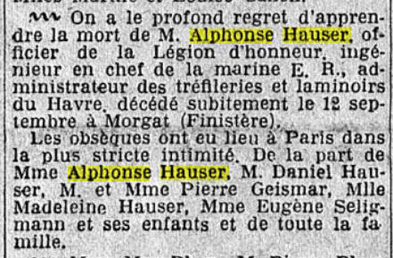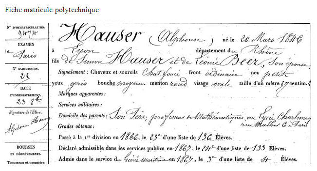 Fils de Simon Hauser, professeur de mathématiques et de Léonie BEER
