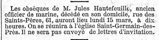 à PARIS (Seine) - Décédé le 11 mars 1915 à PARIS VIème (Seine).