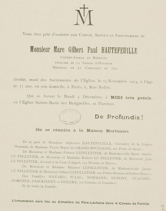 - Décédé le 29 novembre 1923 à PARIS XVIIème (Seine).