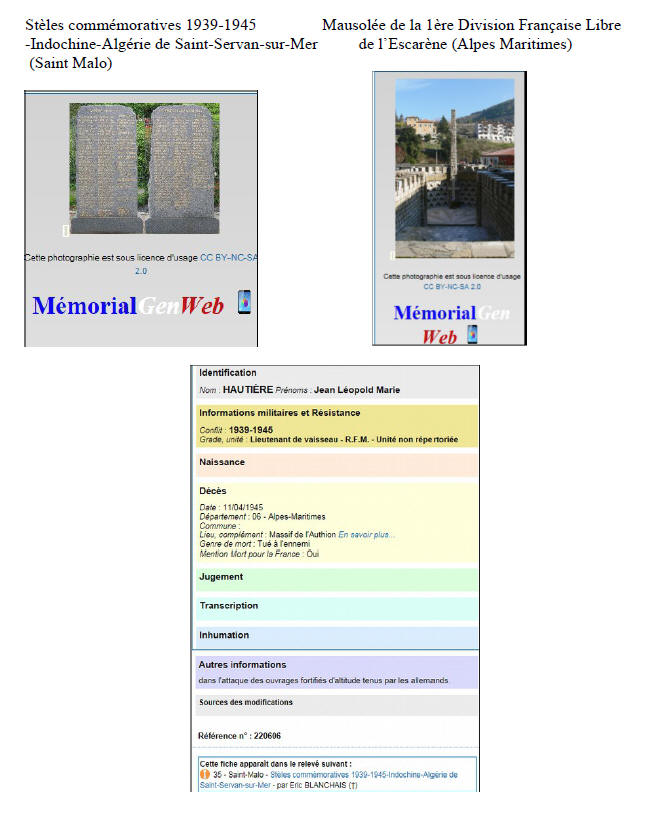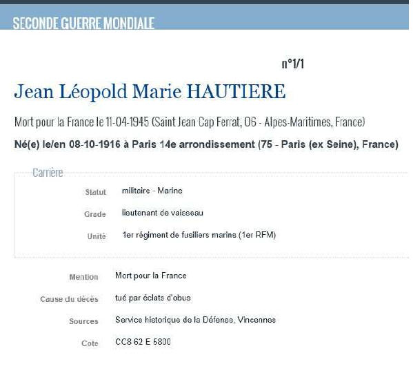 1945 (JO du 28 juin 1945), le lieutenant de vaisseau Hautière a été