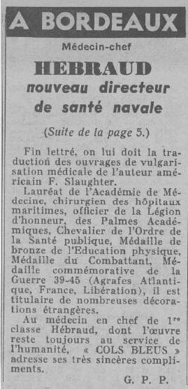 Le 22 mars 1946, Chirurgien des hôpitaux maritimes.