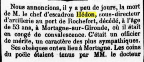 Au 1er janvier 1876, Sous-directeur de l'Artillerie à ROCHEFORT.