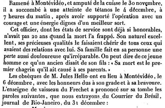 (Finistère) - Tué le 4 décembre 1845 à MONTEVIDEO, URUGUAY.