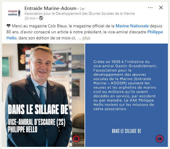 27 janvier 2022, Président de l'Entraide Marine - ADOSM