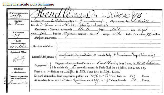 Élève de l'École polytechnique le 1er novembre 1893, opte pour le