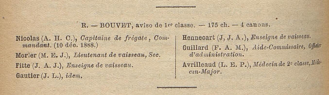 jusqu’à l’échouage de l’Aviso BOUVET en décembre 1889 et qui ne