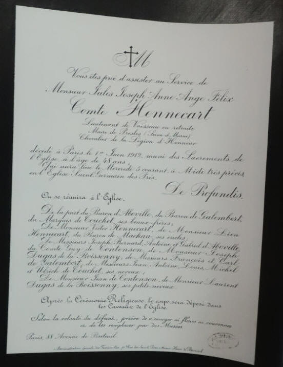 Décédé le 1er juin 1912 à PARIS VIème (Seine)