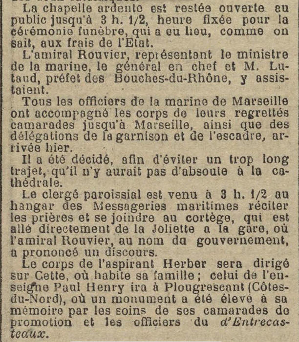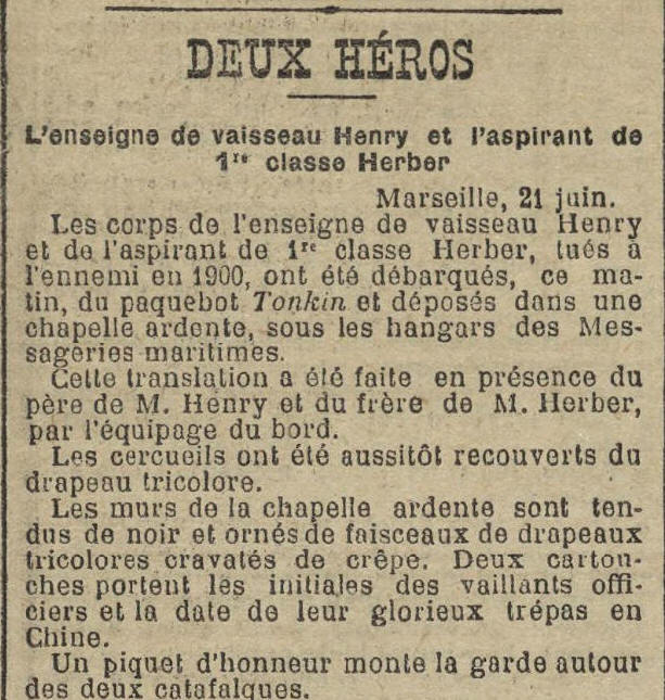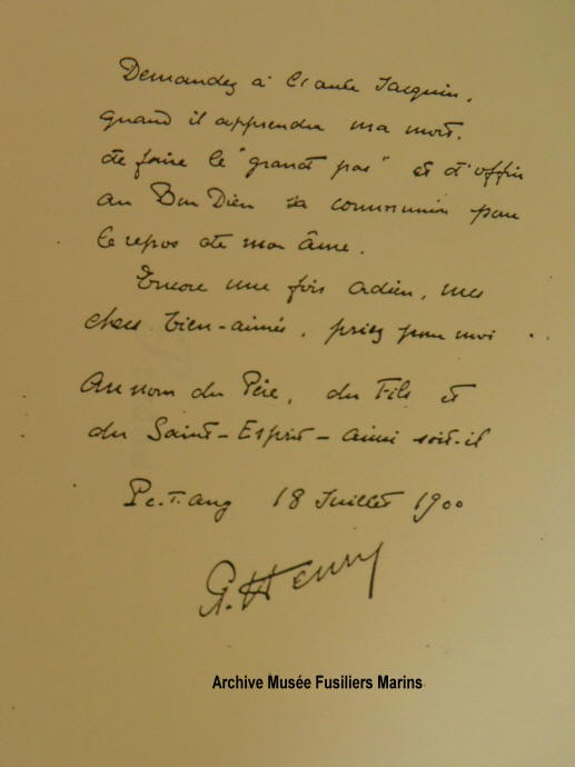 1900 vers 7 heures du matin. Son corps fut ramené en France et ses