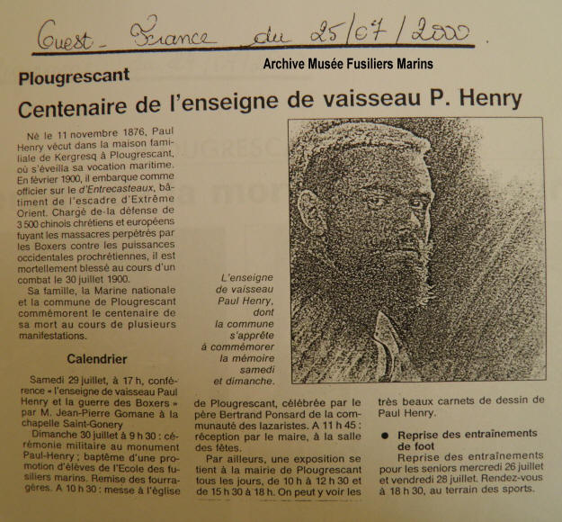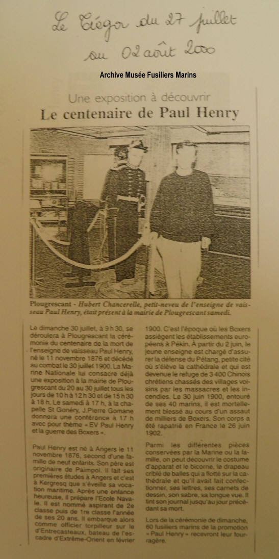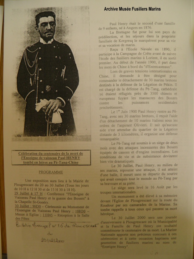 L'Enseigne de Vaisseau Paul HENRY né à Angers le 11 novembre 1876