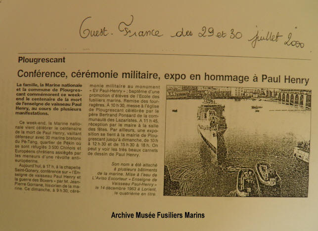 Un cours portera son nom à l'Ecole des fusiliers marins en 2000