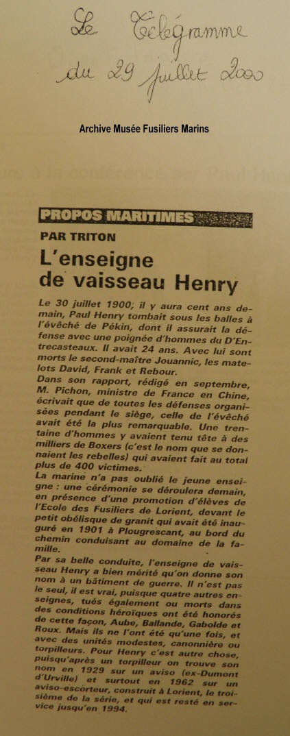 d'Angers au nom de l'enseigne de vaisseau Henry !