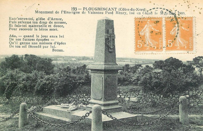 Monument élevé à Plougrescant (22820 - Côtes d'Armor) à la mémoire de l'EV Henry